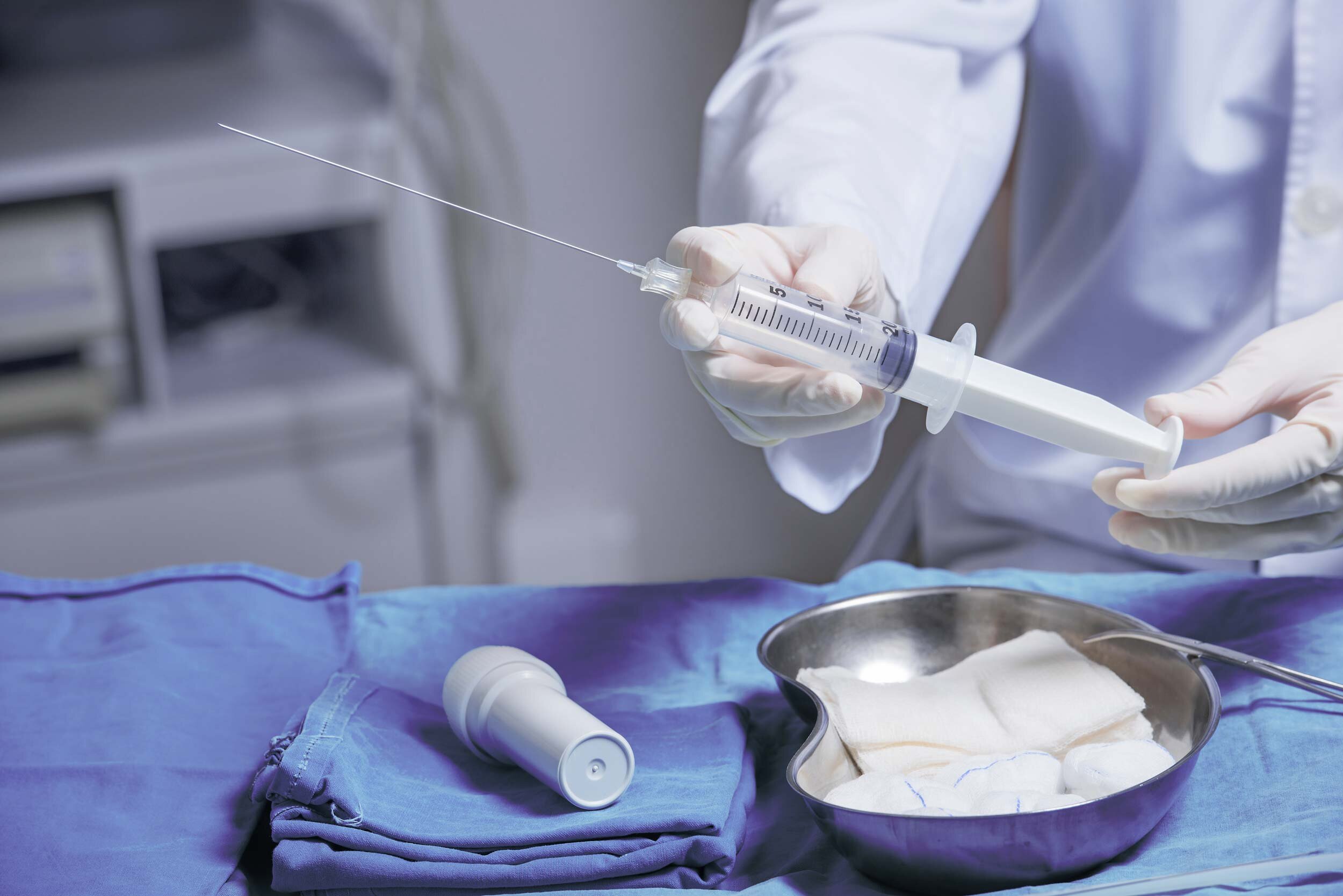After an in-depth medical consultation regarding the benefits and risks of amniocentesis, the health professional inserts a needle through the abdominal wall and into the amniotic sac to remove a sample of amniotic fluid. The sample is then sent to a laboratory for testing.