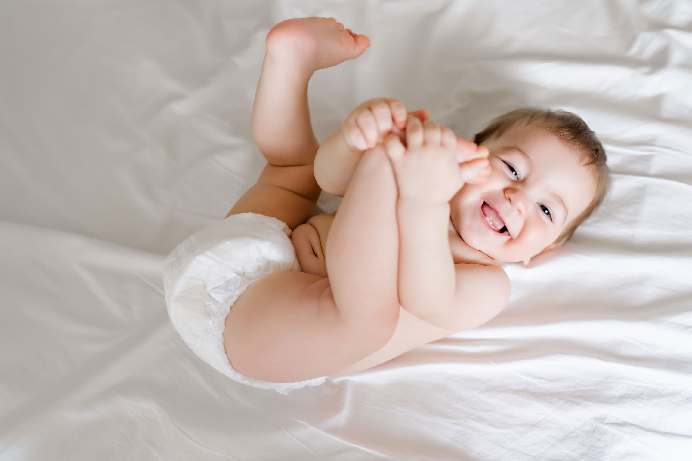 Starting with the fifth week of life, the number of full nappies usually decreases. At around three months of age, your baby will normally do two poos per day. Although this may vary. At this age, anything between three stools a day and one poop every fortnight can be normal. As long as your baby seems healthy and lively, there is no need to worry.