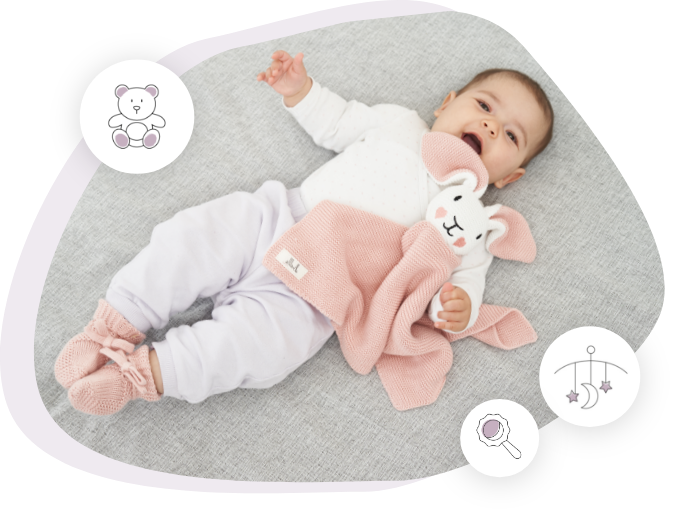 Unser Schmusetuch ist frei von chemischen Zusätzen und Hypoallergenen, was es besonders geeignet für empfindliche Babyhaut macht. Im Babybett sollte das Schmusetuch erst verwendet werden, wenn dein Baby sich allein drehen und selbständig danach greifen kann.